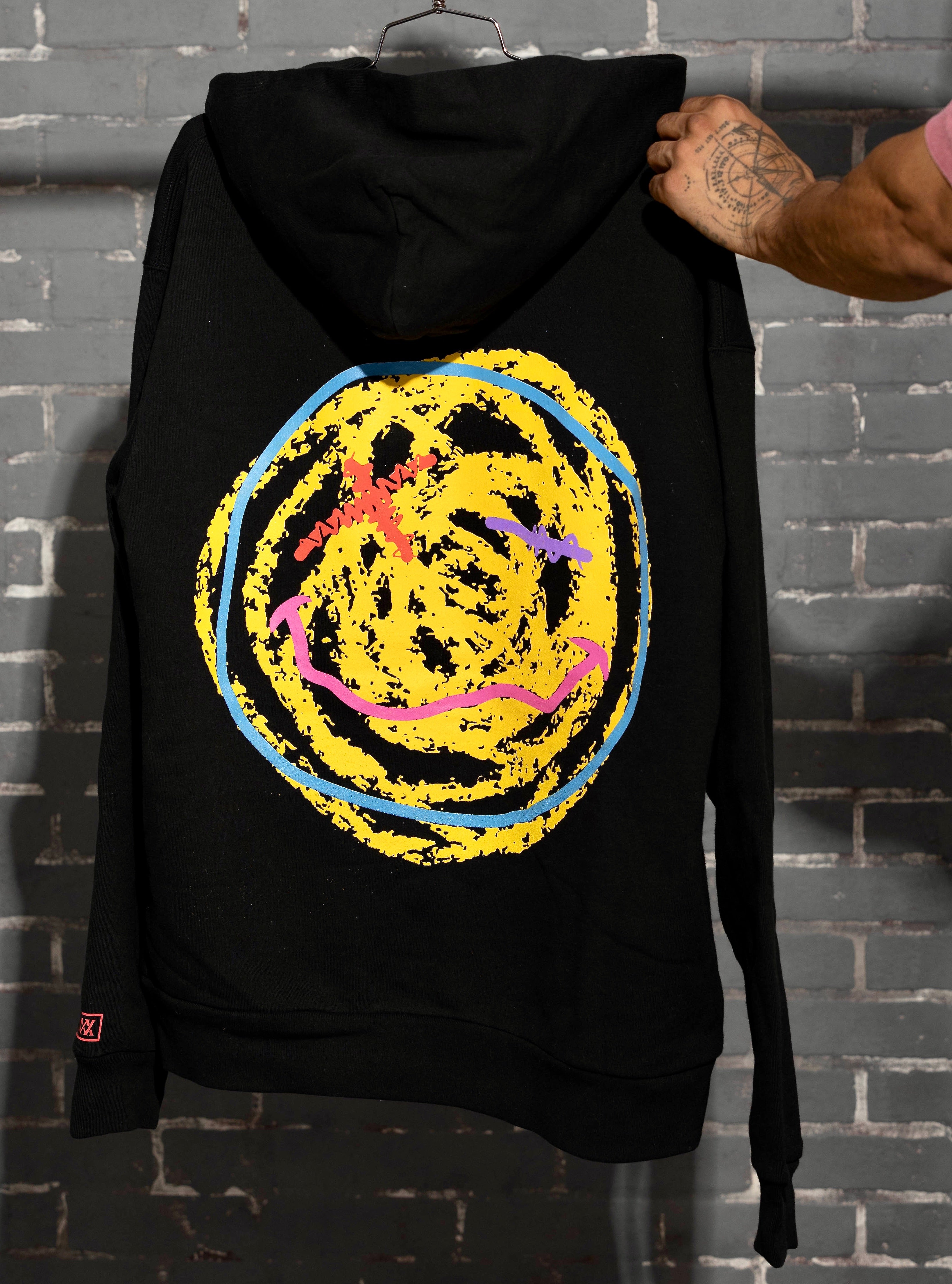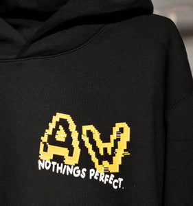 AW - "Nothing's Perfect" Hoodie - BUBBLE BEE - Is your everyday workmans hoodie: simple, modern, and functional. Made of 100% Organic Cotton, this ultra durable 16 oz heavy-weight but soft fleece is suitable for the low temps. No Drawstrings, cross hatch hood, oversized fit. Your girlfriends perfect sleep over sweater. Each sweater back print is off set by hand, purposely making each hoodie a 1 of 1. No hoodie prints the exact same.